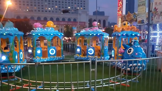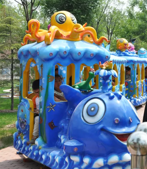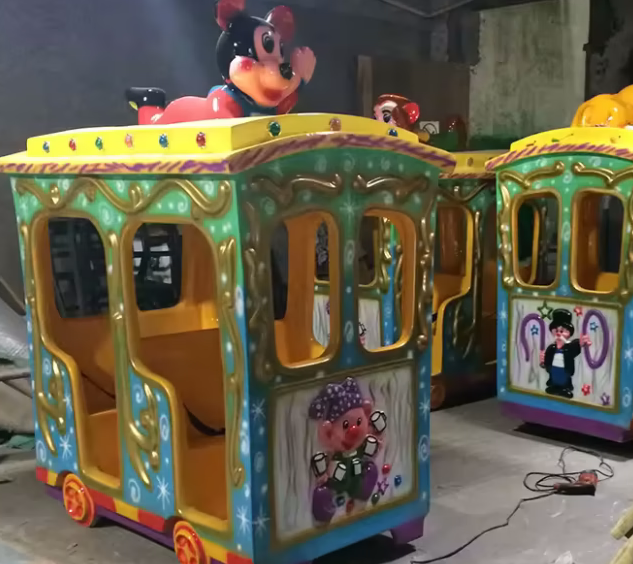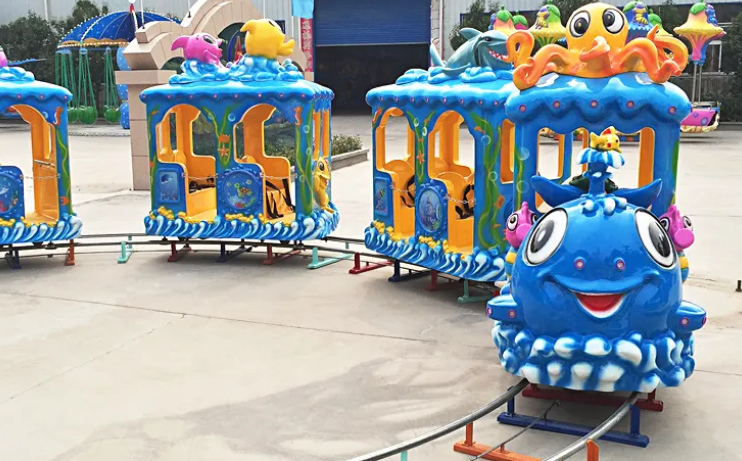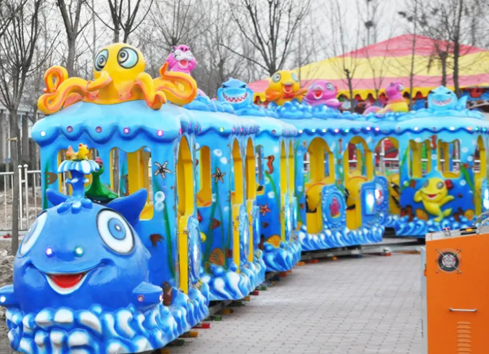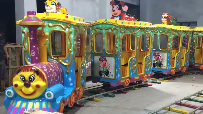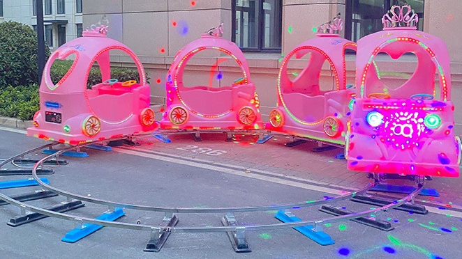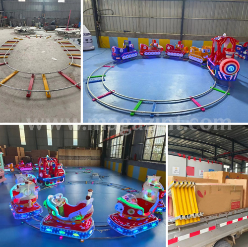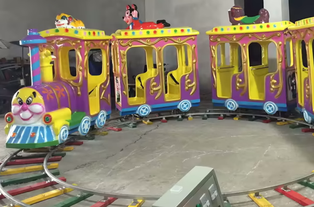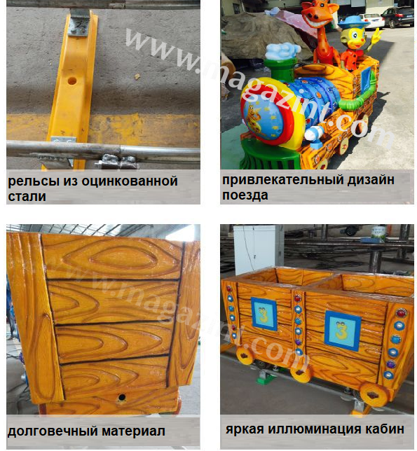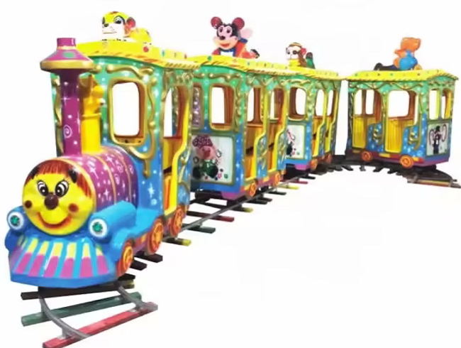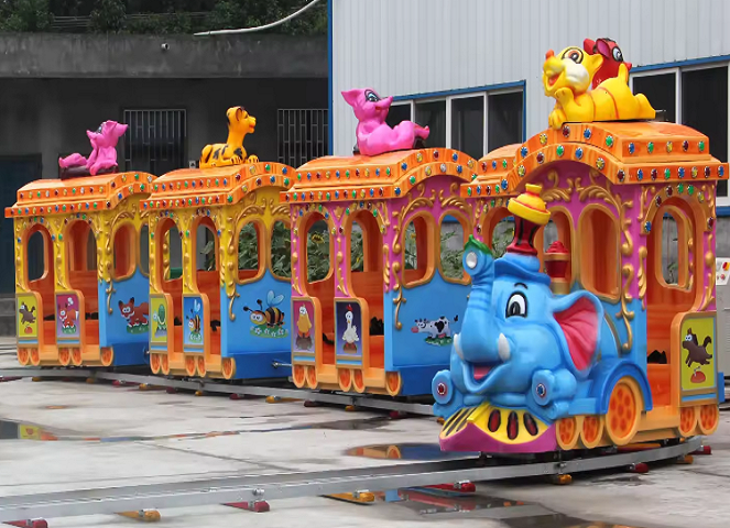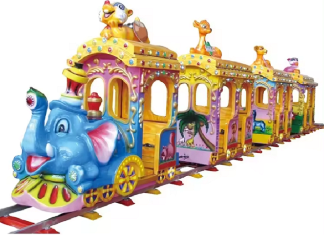Поездка на красочных аттракционах дарит детям необыкновенные впечатления, которые никогда не забудутся. Милый маленький детский поезд на рельсах очень безопасен, а кабина компактна, поэтому на нем могут ездить даже малыши. Паровоз оснащен яркими мигающими огнями. Скорость езды регулируется. Детские электрические аттракционы на рельсах доступны в различных видах, таких как мультяшный поезд, поезд-сафари, поезд с вагонами разных животных и т. д. Увлекательный и захватывающий аттракцион отлично подойдет для парков развлечений, игровых площадок, тематических парков и торговых центров.
